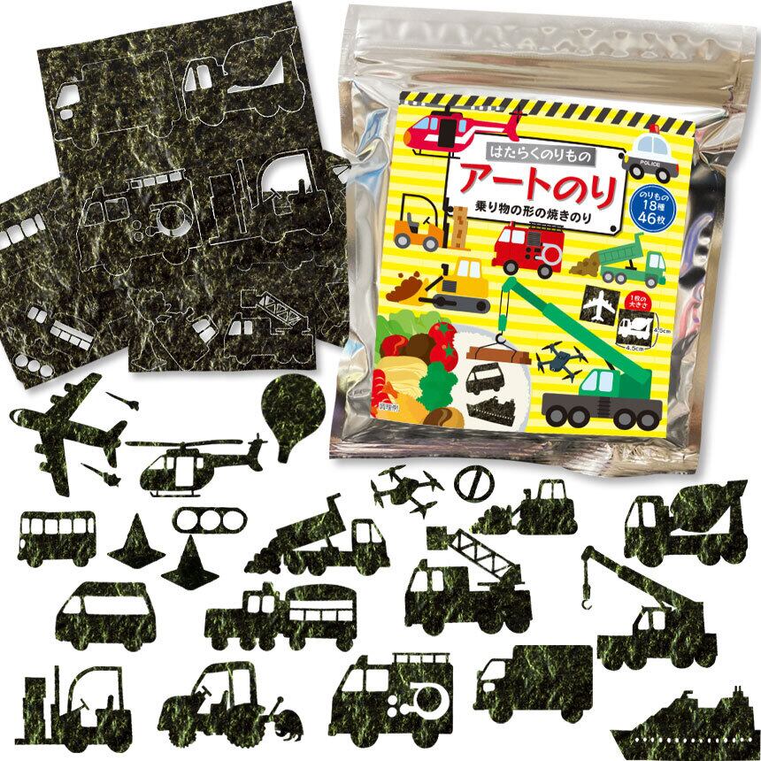 【期間限定 ネット限定】はたらくのりもの アートのり 海苔 のりもの18種類 ( 切り抜き46枚入 ) 全形2枚分 人気のはたらく乗り物 パトカー 救急車 豪華客船 焼き海苔 のり | なかのふぁくとりーLABO | アートのり・猫 恐竜 のお菓子の通販