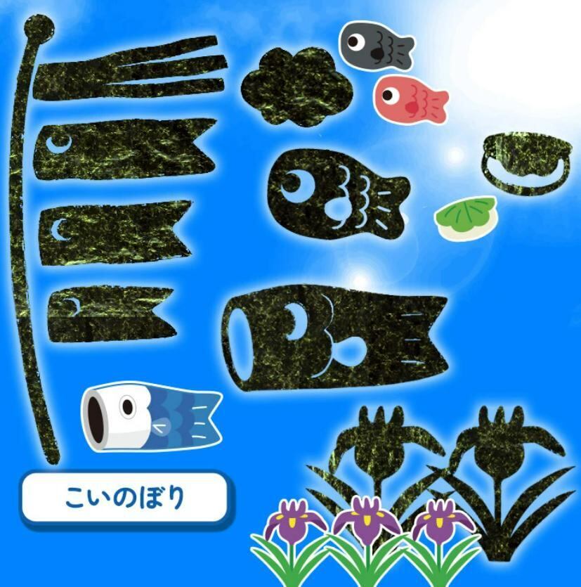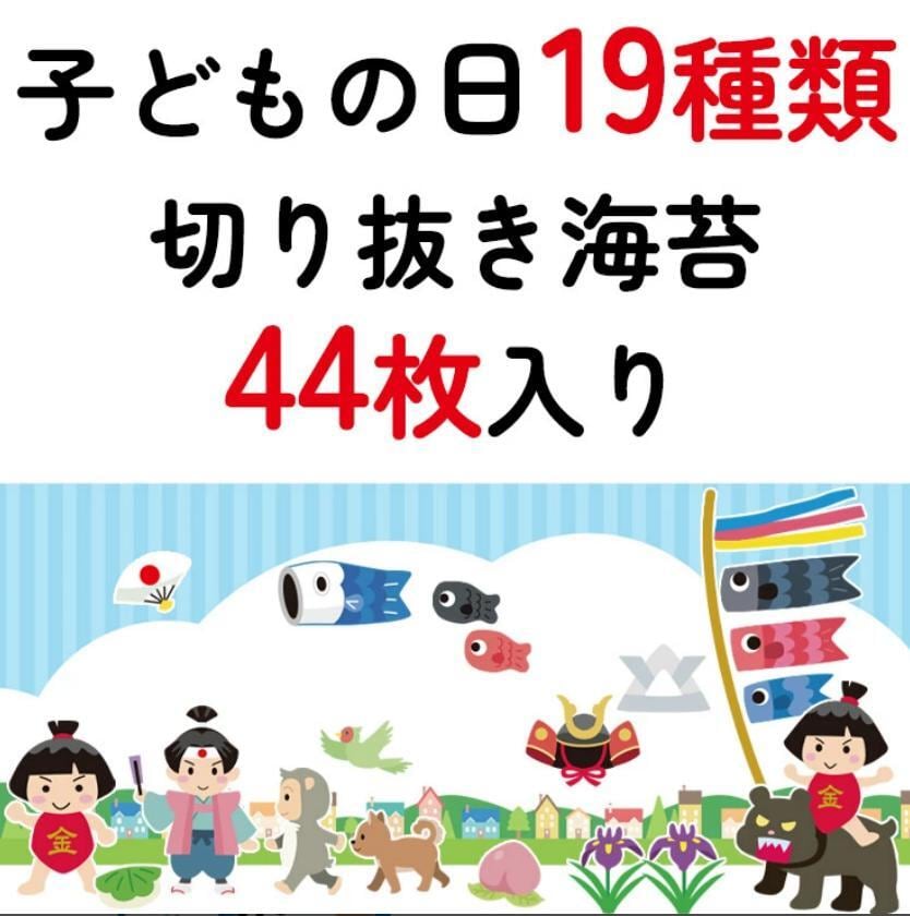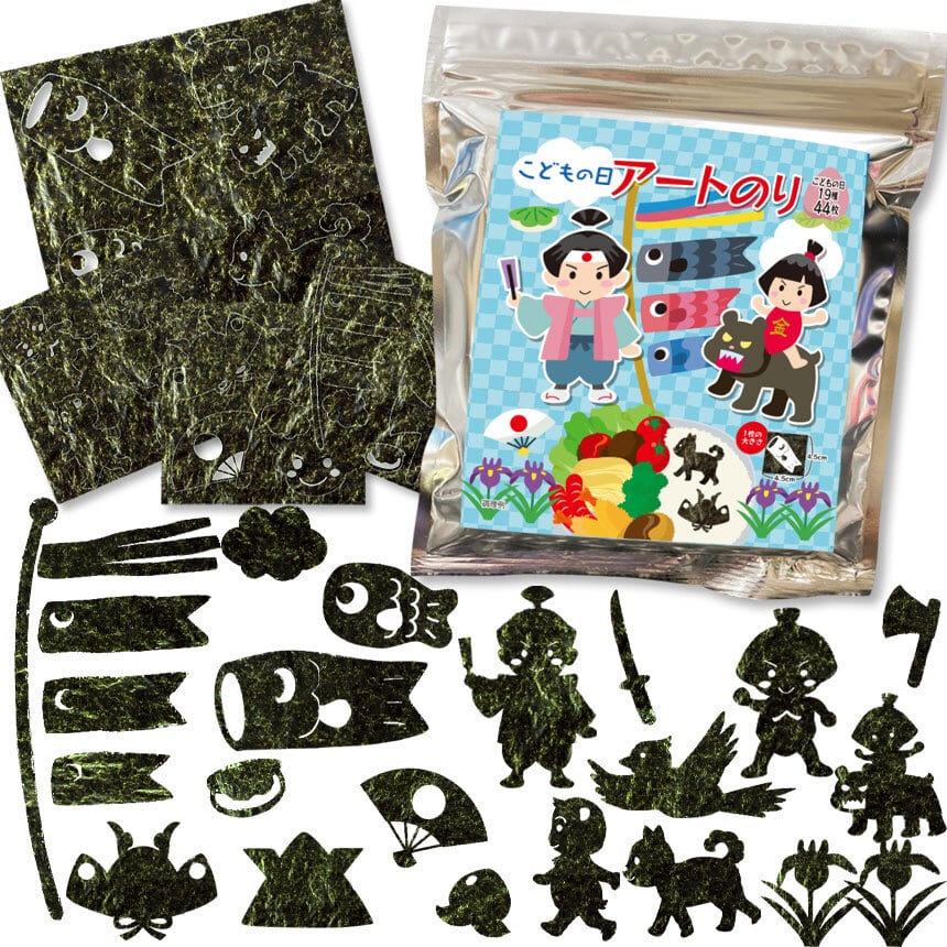 【期間限定 ネット限定】こどもの日 アートのり 海苔 のりもの19種類 ( 切り抜き44枚入 ) 全形2枚分 ももたろう 桃太郎 金太郎 きんたろう こいのぼり 焼き海苔